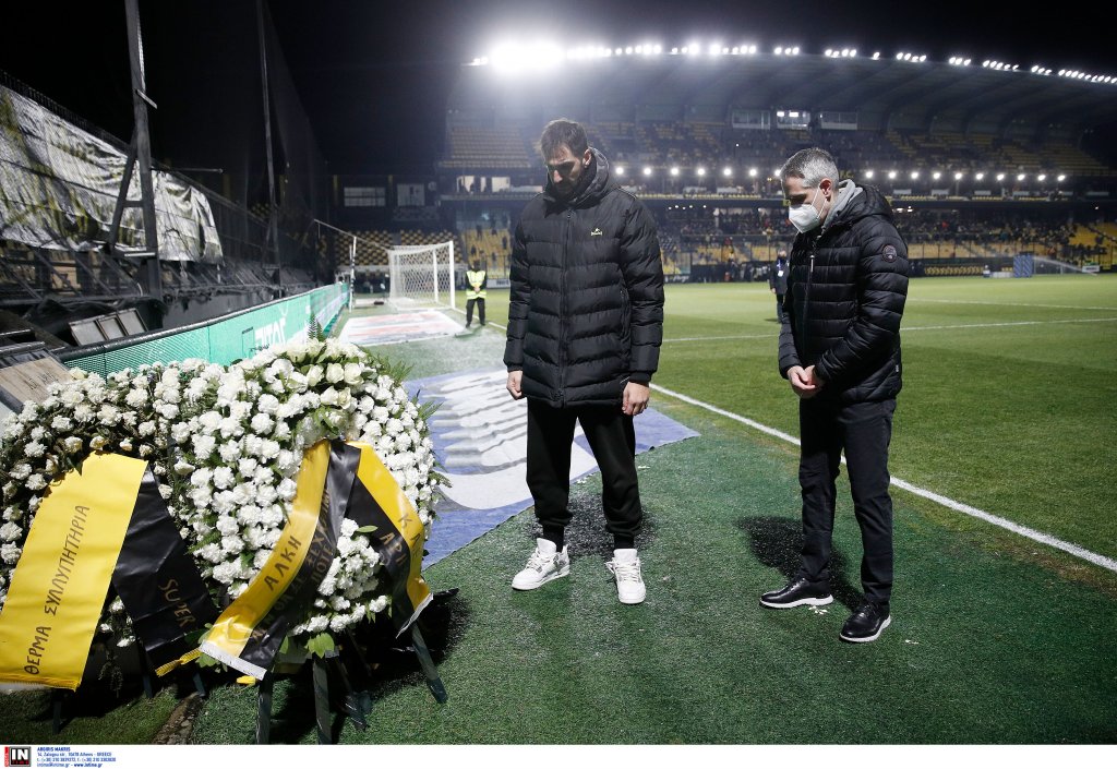 Το στεφάνι που φέρει το μήνυμα «Άλκη δε θα σε ξεχάσουμε ποτέ» κατατέθηκε στο μνημείο του «Κλεάνθης Βικελίδης» για τους φιλάθλους των «κιτρινόμαυρων» έφυγαν από τη ζωή.