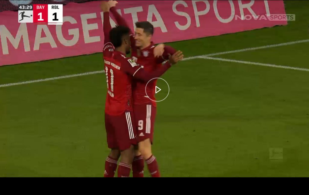 Η πρώτη που απείλησε ήταν η Λειψία, με τον Ντάνι Όλμο, που επέστρεψε σε αρχική ενδεκάδα μετά από 140 ημέρες, έπιασε το δυνατό σουτ, με την μπάλα να περνάει δίπλα από το δοκάρι. Δύο λεπτά αργότερα, η Μπάγερν άνοιξε το σκορ. Λάθος στην άμυνα της Λειψίας, ο Λεβαντόφσκι από καλή θέση χάνει την ευκαιρία, αλλά ο Μίλερ πήρε το ριμπάουντ απ' την επέμβαση του Γκουλάτσι και στην 404η εμφάνισή του, σε ματς Bundesliga, έκανε το 1-0, φτάνοντας τα 136 γκολ. Στο 19', η Λειψία απείλησε, ξανά με τον Όλμο, με τον Ανχελίνο να σταματά τον Γκνάμπρι στο 26ο λεπτό. Δευτερόλεπτα αργότερα, ο Τολισό έχασε την μπάλα στο κέντρο, ο Ενκουνκού έφυγε στην κόντρα, έδωσε στον Λάιμερ κι αυτός στον Σίλβα που από κοντά αλλά και πολύ πλάγια θέση ισοφάρισε. Δέκα λεπτά πριν το 45λεπτο, ο Κομάν σημάδεψε το δοκάρι και στο 39' ο Γκνάμπρι βρήκε τον Μίλερ κι αυτός έστειλε την μπάλα στα δίχτυα, όμως είχε σημειωθεί φάουλ του Λεβαντόφσκι στον Γκβάρντιολ που βλέπει ο VAR, με συνέπεια την ακύρωση του γκολ. Τελικά, το γκολ για τους πρωταθλητές Γερμανίας ήρθε στο 44'. Ο Τολισό βρήκε αριστερά τον Κομάν κι αυτός τον Λεβαντόφσκι για το 2-1.