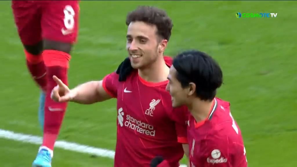 Η Λίβερπουλ εκμεταλλεύτηκε τον εκνευρισμό της αντιπάλου της και στο 53’ ο Αλεξάντερ-Άρνολντ «σέρβιρε» στον Ζότα και ο Πορτογάλος με μία εκπληκιτκή κεφαλιά έκανε το 1-0.