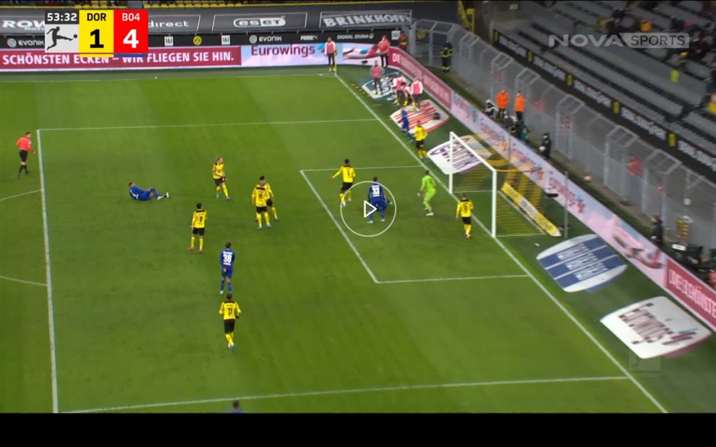 Ο εφιάλτης για τη Ντόρτμουντ δεν είχε τελειώσει, ωστόσο. Στο 53', μετά από εκτέλεση κόρνερ, ο κεντρικός αμυντικός της Λεβερκούζεν, ο Τα, έπιασε μια οβίδα και έκανε το 1-4. Με τη συμπλήρωση 80 λεπτών στο παιχνίδι, ο Ρέινα επιχείρησε να μειώσει, για τη Ντόρτμουντ, αλλά ο Γκριλ απέκρουσε, με τη Λεβερκούζεν να φτάνει και σε πέμπτο γκολ στο 87' με τον Μούσα Ντιαμπί. Στο 89' και έπειτα από χρήση VAR, διαμορφώθηκε το τελικό 2-5 με σκόρερ τον Τίγκες.