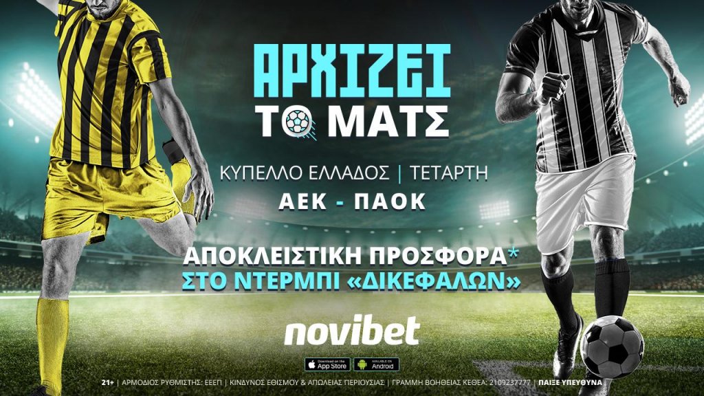 Exclusive προσφορά από την Novibet αποκλειστικά για τους αναγνώστες του aek365 εν όψει του ντέρμπι Κυπέλλου της Τετάρτης με τον ΠΑΟΚ!