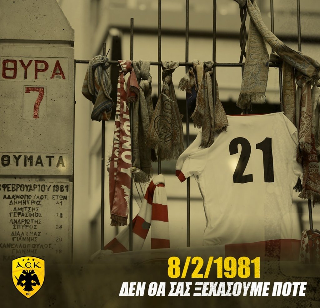 08/02/1981: Αιωνία η μνήμη όλων όσοι αδικοχάθηκαν την πιο μαύρη ημέρα για το ελληνικό ποδόσφαιρο, και όχι μόνο. Το πολύχρωμο μήνυμα της ενότητας και των αξιών, που πρεσβεύει ο αθλητισμός είναι πλέον πιο ηχηρό από ποτέ.