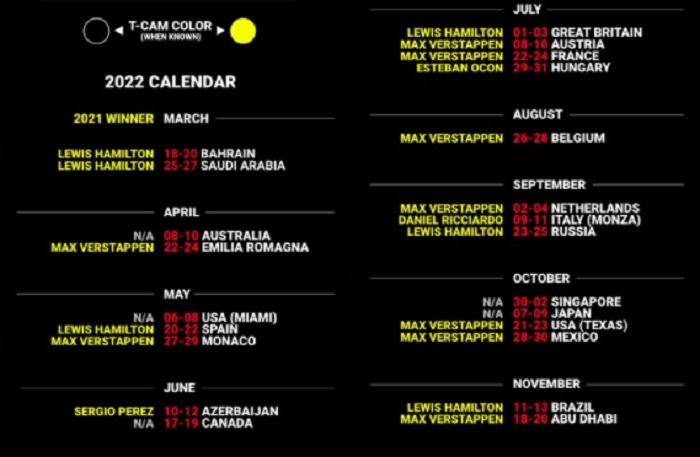Αύριο (09/02) η Red Bull Racing θα γίνει η δεύτερη εταιρεία που παρουσιάζει το νέο της μονοθέσιο και ακολουθούν κατά σειρά οι Aston Martin (10/02), McLaren (11/02), Alpha Tauri (14/02), Williams Racing (15/02), Ferrari (17/02), Mercedes (18/02), Alpine (21/02) και Alfa Romeo (27/02).