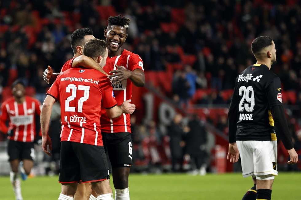Η Αϊντχόφεν άνοιξε το σκορ μόλις στο 8ο λεπτό με κεφαλιά του Μαντουεκέ μετά από κόρνερ ενώ στο 28’ ο Μάριο Γκέτσε έκανε το 2-0 με κοντινό γύρισμα.