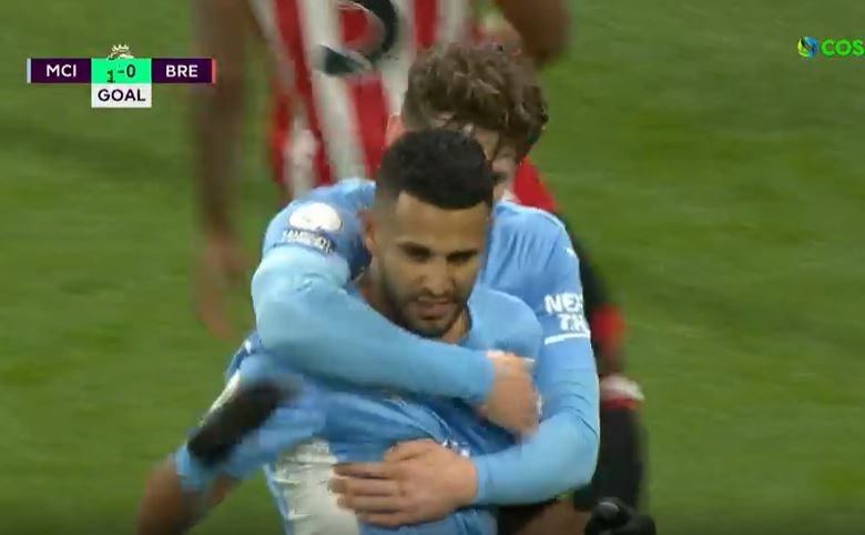 Στο 30’ ο Ραγιά είπε όχι σε σουτ του Μπερνάρντο Σίλβα και στο 35’ το σουτ του Λαπόρτ έξυσε τα δοκάρια της Μπρέντφορντ. Τελικά στο 39’ ο Ρούρσλεφ έκανε πέναλτι στον Στέρλινγκ και ο Μαχρέζ το εκτέλεσε εύστοχα για το 1-0.