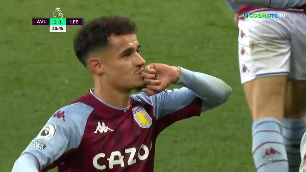 Στο 8ο μόλις λεπτό ο Ροδρίγο έκανε το γύρισμα για τον Τζέιμς που πλάσαρε για το 0-1 ενώ στο 29’ η Λιντς είχε και δοκάρι με τον Τζέιμς. Όμως στο 30’ ο Κοουτίνιο γύρισε από το πέναλτι και πάσαρε όμορφα για το 1-1. Και στο 38’ ο Κοουτίνιο έβγαλε απίθανη μπαλιά στον Ράμσεϊ που έφυγε μόνος με τον Μελιέ και πλάσαρε για το 2-1 ενώ στο 43’ η Βίλα έφυγε στην κόντρα, ο Κοουτίνιο άνοιξε ιδανικά δεξιά στον Ράμσεϊ που σούταρε για το 3-1 Η Λιντς δεν το έβαλε κάτω και στο 45+1’ ο Ροδρίγο σέντραρε από αριστερά, η μπάλα κόντραρε και πήρε ύψος και ο Τζέιμς με κεφαλιά εξ επαφής μείωσε σε 3-2.