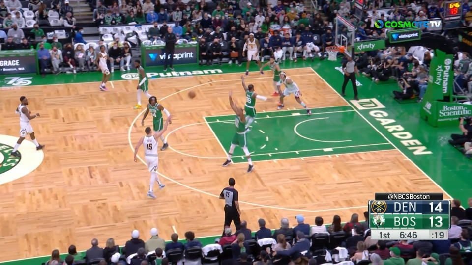 Οι Κέλτες έβαλαν 45 πόντους στην τρίτη περίοδο για να μετατρέψουν το -10 σε +9 μέσα σε ένα δωδεκάλεπτο, με τον Τζέισον Τέιτουμ να μην έχει αντίπαλο (38 πόντοι, 10 ριμπάουντ) απέναντι στα Γεράκια που δεν είχαν τον τραυματία Τζον Κόλινς στη σύνθεσή τους. Τρέι Γιανγκ και Μπόγκνταν Μπογκντάνοβιτς πάλευαν μόνοι απέναντι σε όλους, είχαν όμως 56 πόντους από 46 προσπάθειες με επόμενο σκόρερ τον ΝτιΆντρε Χάντερ στους 10 πόντους.