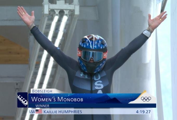 «Αυτό το μετάλλιο, το πρώτο μου για τις Ηνωμένες Πολιτείες, θα έχει πάντα μια ξεχωριστή θέση στην καρδιά μου. Σίγουρα θα κάνω ένα τατουάζ με την σημαία των Ηνωμένων Πολιτειών και με έναν δράκο», είπε η Χάμφρις, η πρώτη γυναίκα στα Ολυμπιακά χρονικά, η οποία κατέκτησε μετάλλια στο μπόμπσλεϊ για δύο χώρες και φέρει το προσωνύμιο «ο δράκος του χιονιού».