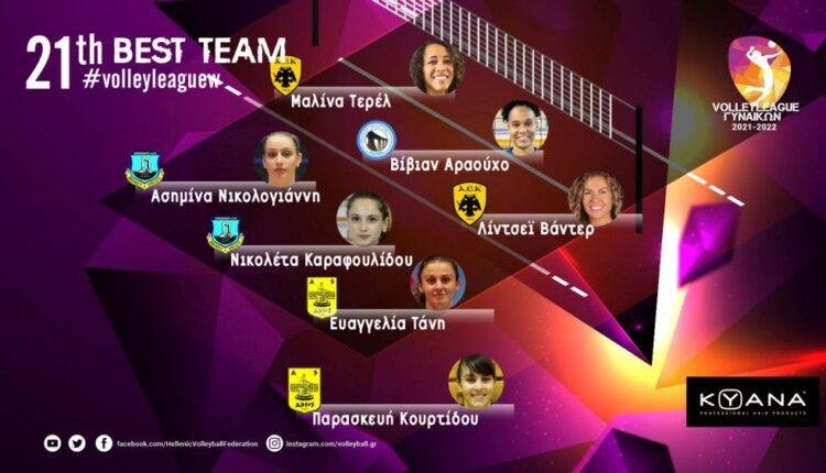 Δύο αθλήτριες της ΑΕΚ βρίσκονται στην κορυφαία επτάδα της 21ης αγωνιστικής της Volleyleague Γυναικών.
