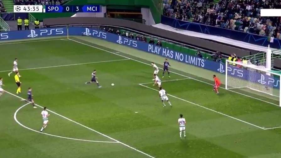 O Στέρλινγκ κινήθηκε στην πλάτη της άμυνας της Σπόρτινγκ και από αριστερά έστρωσε στον Μπερνάρντο Σίλβα. Εκείνος πλάσαρε από το πέναλτι, η μπάλα βρήκε και σε έναν αντίπαλο και κατέληξε στα δίχτυα του Αδάν για το 0-4.