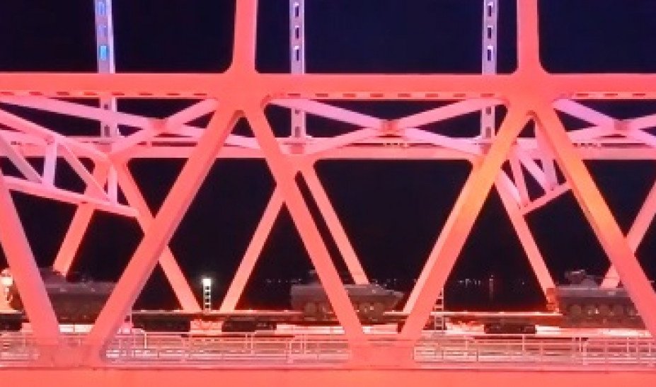 Η ρωσική τηλεόραση μετέδωσε νυχτερινά πλάνα από ένα τρένο που μετέφερε τανκς να διασχίζει τη γέφυρα που περνά από τα στενά Κερτς, την οποία κατασκεύασε η Μόσχα για να ενώσει την Κριμαία με το ρωσικό έδαφος.