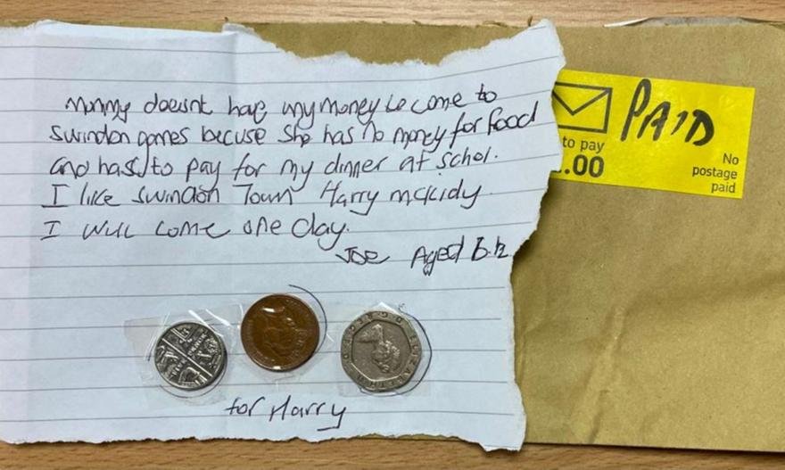 Ο πιτσιρίκος έγραψε γράμμα προς την Σουίντον και διέθεσε 26 πένες προς τον αγαπημένο του ποδοσφαιριστή των «κύκνων», Χάρι ΜακΚίρντι, που είχε σκοράρει απέναντι στην Μάντσεστερ Σίτι στο Κύπελλο Αγγλίας.