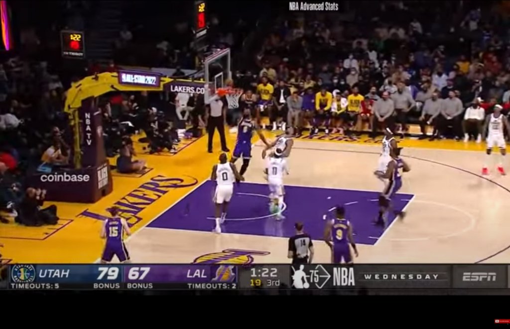 Οι Λος Άντζελες Λέικερς ήταν στο -12, στη τέταρτη περίοδο, είχαν χάσει τον Άντονι Ντέιβις με τραυματισμό, αλλά, με τον Λεμπρόν Τζέιμς να αναλαμβάνει δράση, επικράτησαν 106-101 των Γιούτα Τζαζ. Με το σκορ στο 33-29, οι Τζαζ έκαναν σερί 10-0 και προηγήθηκαν 33-39, με την ομάδα της Γιούτα να ολοκληρώνει το πρώτο ημίχρονο, έχοντας προβάδισμα επτά πόντων, 46-53. Μόλις τρία λεπτά μετά την έναρξη του τρίτου 12λεπτου, ο Άντονι Ντέιβις τραυματίστηκε στον δεξί αστράγαλο και αποχώρησε, πρόωρα, από το παιχνίδι. Μέχρι να συνέλθουν οι Λέικερς, οι Τζαζ είχαν ξεφύγει με +14, 61-75, για να μπουν στη τέταρτη περίοδο, έχοντας διαφορά οκτώ πόντων, 71-79. Επιπλέον, με 6:35 για το τέλος, οι Τζαζ προηγήθηκαν με +12, 80-92, αλλά, τότε... μίλησε ο Λεμπρόν. Με το σκορ στο 89-94 υπέρ των Τζαζ, ο ηγέτης των Λέικερς πέτυχε 10 συνεχόμενους πόντους βάζοντας μπροστά την ομάδα του (δύο τρίποντα, δύο δίποντα), αλλά χρειάστηκε να δώσει και μία τελική πάσα στον Όστιν Ριβς που με τρίποντο 17” πριν το τέλος έκανε το 103-99, κλειδώνοντας ουσιαστικά τη νίκη για τους Λέικερς. Μέχρι το φινάλε, οι γηπεδούχοι είχαν απάντηση σε κάθε προσπάθεια των φιλοξενούμενων, είτε να ισοφαρίσουν, είτε να προηγηθούν, και στο φινάλε επικράτησαν με 106-101. Ο Λεμπρόν Τζέιμς κατέγραψε νέα, προσωπική, επίδοση, αφού συμπλήρωσε 23 συνεχόμενα παιχνίδια, στα οποία σημειώνει 25+ πόντους. Ο ηγέτης των Λέικερς σταμάτησε στους 33 πόντους, εκ των οποίων οι 15 σημειώθηκαν στη τελευταία περίοδο. Οι Τζαζ προέρχονταν από έξι συνεχόμενες νίκες, με τον Ντόνοβαν Μίτσελ να πετυχαίνει, κόντρα στους Λέικερς, 37 πόντους.
