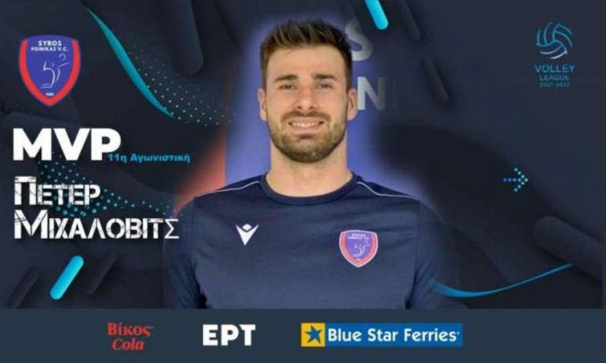 Ο Πίτερ Μιχάλοβιτς ήταν ο κορυφαίος του Φοίνικα Σύρου στο 3-0 σετ επί του Παναθηναϊκού την Τετάρτη στο εξ αναβολής ματς της 11ης αγωνιστικής της Volley League. Στη συγκεκριμένη αναμέτρηση, ο διεθνής Σλοβάκος διαγώνιος των «πειρατών» σημείωσε 22 πόντους με 18 τελειωμένες επιθέσεις στις 31 πάσες που πήρε, δηλαδή, ποσοστό αποτελεσματικότητας 58%.