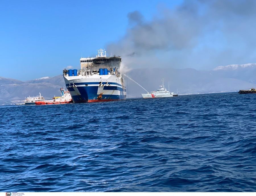 Άνδρες της ΕΜΑΚ που ανέβηκαν εκ νέου, χθες, στο φλεγόμενο πλοίο εντόπισαν τη σορό ενός 58χρονου οδηγού σε καμπίνα φορτηγού στο γκαράζ 2. Νωρίτερα, είχε διασωθεί ένας Λευκορώσος 21 ετών, οδηγός φορτηγού με λιθουανικές πινακίδες.