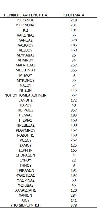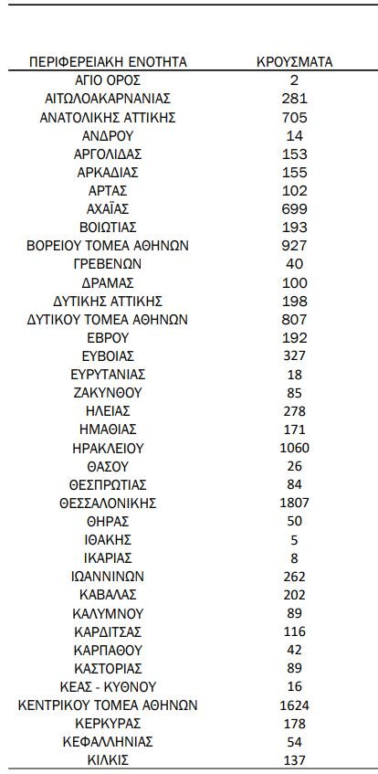 Αναλυτικότερα τα κρούσματα στις περιφερειακές ενότητες που ανήκουν στην Αττική: