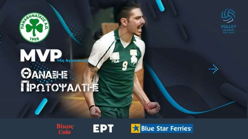 Ο διεθνής ακραίος του Παναθηναϊκού Θανάσης Πρωτοψάλτης αναδείχτηκε MVP Βίκος Cola στην 14η αγωνιστική της Α΄φάσης του πρωταθλήματος Volley League 2021-22 που ολοκληρώθηκε το Σάββατο 19/2.