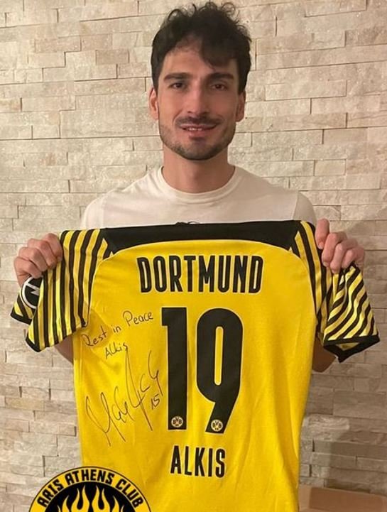 Ο κεντρικός αμυντικός της Ντόρτμουντ φωτογραφήθηκε με μία φανέλα της ομάδας της Βεστφαλίας, η οποία είχε πάνω της αφιέρωση για τον 19χρονο αδικοχαμένο φίλο των «κιτρίνων». Την συγκεκριμένη φωτογραφία έφερε στο φως της δημοσιότητας, η σελίδα «Aris Athens Club».