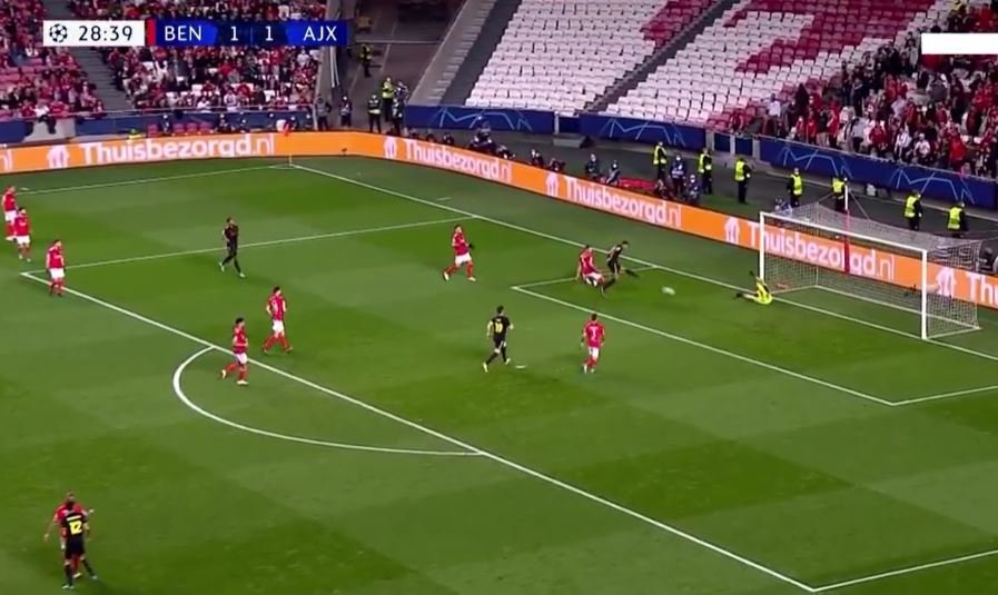 Τίμπερ σέντραρε από αριστερά, ο Αλέ έβαλε την προβολή και ο Βλαχοδήμος απέκρουσε αλλά η μπάλα στρώθηκε ξανά στον επιθετικό του Άγιαξ που έγραψε το 1-2 με πλασέ εξ επαφής.