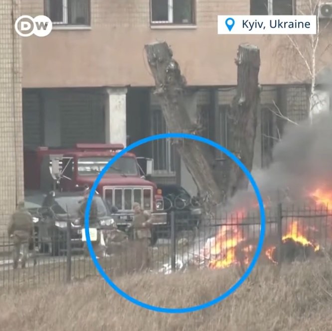Βίντεο της Deutsche Welle που μεταδόθηκε στο Twitter, παρουσιάζει μια ομάδα Ουκρανών στρατιωτών, οι οποίοι εθεάθησαν να καίνε έγγραφα και αντικείμενα έξω από το αρχηγείο πληροφοριών του ουκρανικού υπουργείου Άμυνας στο Κίεβο.