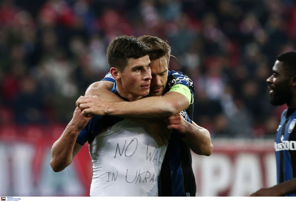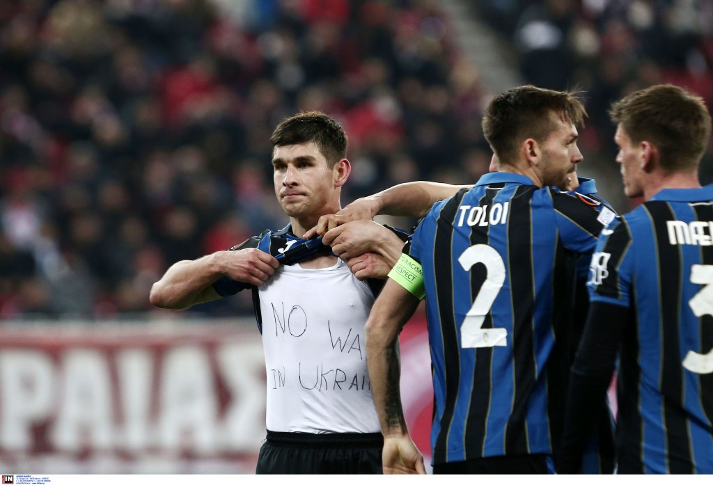 Στην πατρίδα του την Ουκρανία αφιέρωσε το γκολ που πέτυχε στο Φάληρο ο Μαλινόφσκι. Ο Ουκρανός μεσοεπιθετικός της Αταλάντα με το που πέτυχε το 0-2 σήκωσε την φανέλα του και έστειλε το δικό του μήνυμα “Όχι στον πόλεμο” το οποίο κυριαρχεί μετά τα όσα γίνονται στην Ουκρανία με την βάρβαρη ρωσική εισβολή.