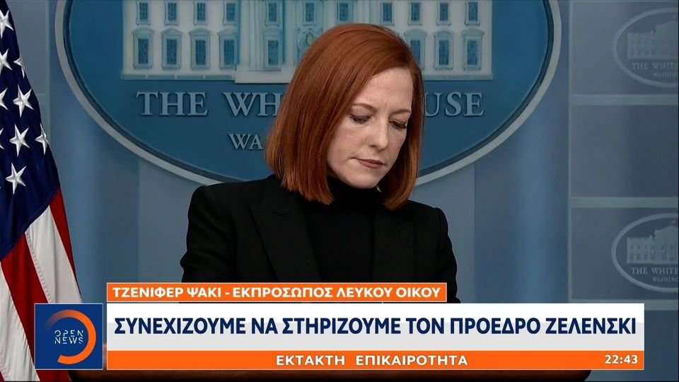 Η εκπρόσωπος του Λευκού Οίκου, Τζεν Ψάκι, δήλωσε σήμερα πως ο πρόεδρος Μπάιντεν θα επιβάλλει απευθείας κυρώσεις στον Ρώσο πρόεδρο Πούτιν και σε άλλους ανώτατους αξιωματούχους της Ρωσίας.