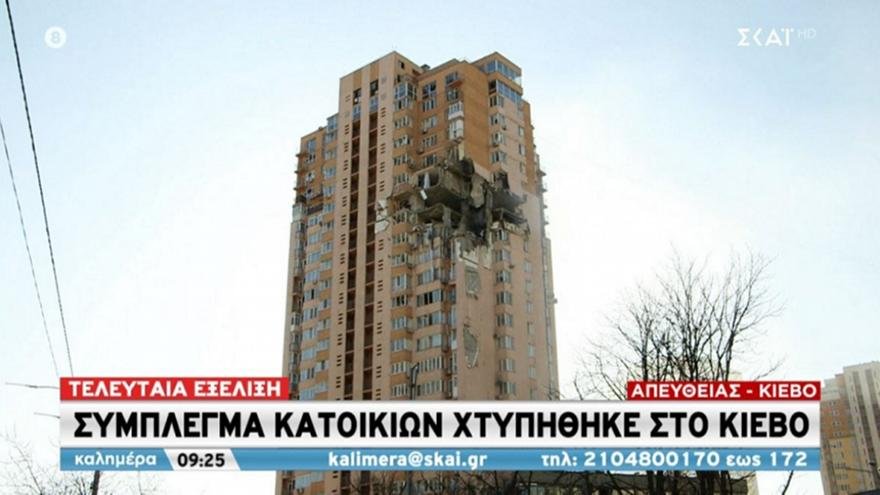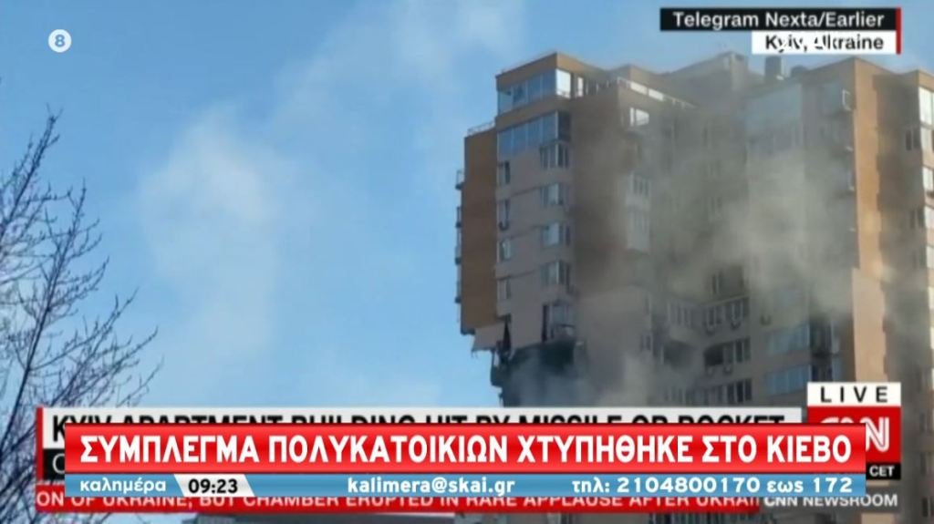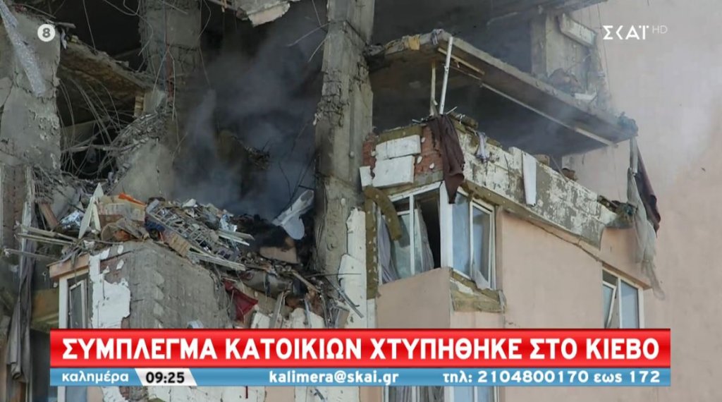 Σύμπλεγμα κατοικιών επλήγη στο Κίεβο κοντά στο αεροδρόμιο Τζουλιάνι σε κεντρικό σημείο της Ουκρανικής πρωτεύουσας.