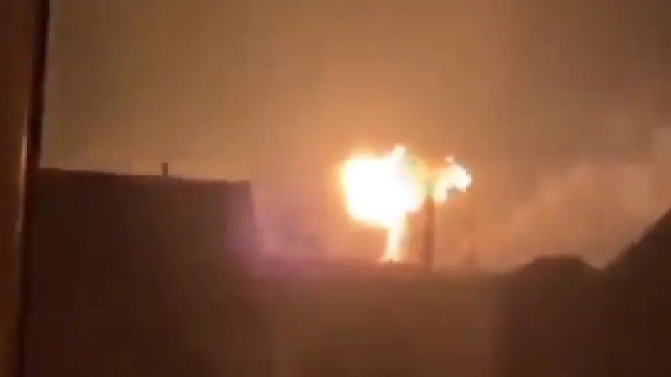 Σε βίντεο που δημοσιοποιήθηκε μέσω της πλατφόρμας Telegram, διακρίνεται ένα μεγάλο πύρινο μανιτάρι μετά την έκρηξη.