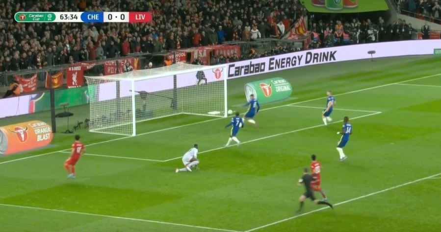 Στο 64ο λεπτό ο Σαλάχ έφυγε μόνος με τον Μεντί κι έσκαψε όμορφα αλλά ο Τιάγκο Σίλβα έσωσε πάνω στη γραμμή.