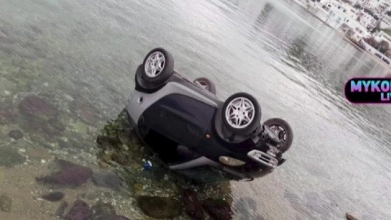 Στην Μύκονο, ένα αυτοκίνητο βρέθηκε στη θάλασσα, έπειτα από τσακωμό.