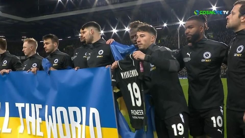 Έτσι λοιπόν, μπήκαν στον αγωνιστικό χώρο με ουκρανικές σημαίες και υπό τον ήχο του "Imagine" του Τζον Λένον. Κεντρικό πρόσωπο ήταν ο Ουκρανός Βιτάλι Μικολένκο της Έβερτον.