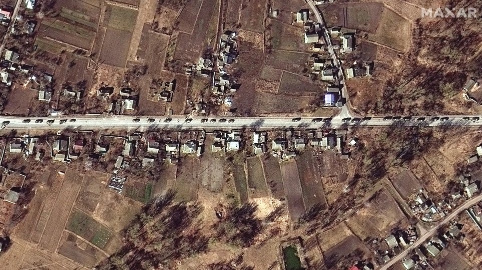 Η φάλαγγα 60 χιλιομέτρων που περιλαμβάνει τεθωρακισμένα οχήματα, άρματα μάχης και οχήματα του πυροβολικού, σταμάτησε την προέλασή της προς το Κίεβο πριν από τρεις ημέρες και επί του παρόντος το μπροστινό μέρος της είναι περίπου 30 χιλιόμετρα μακριά από την ουκρανική πρωτεύουσα.