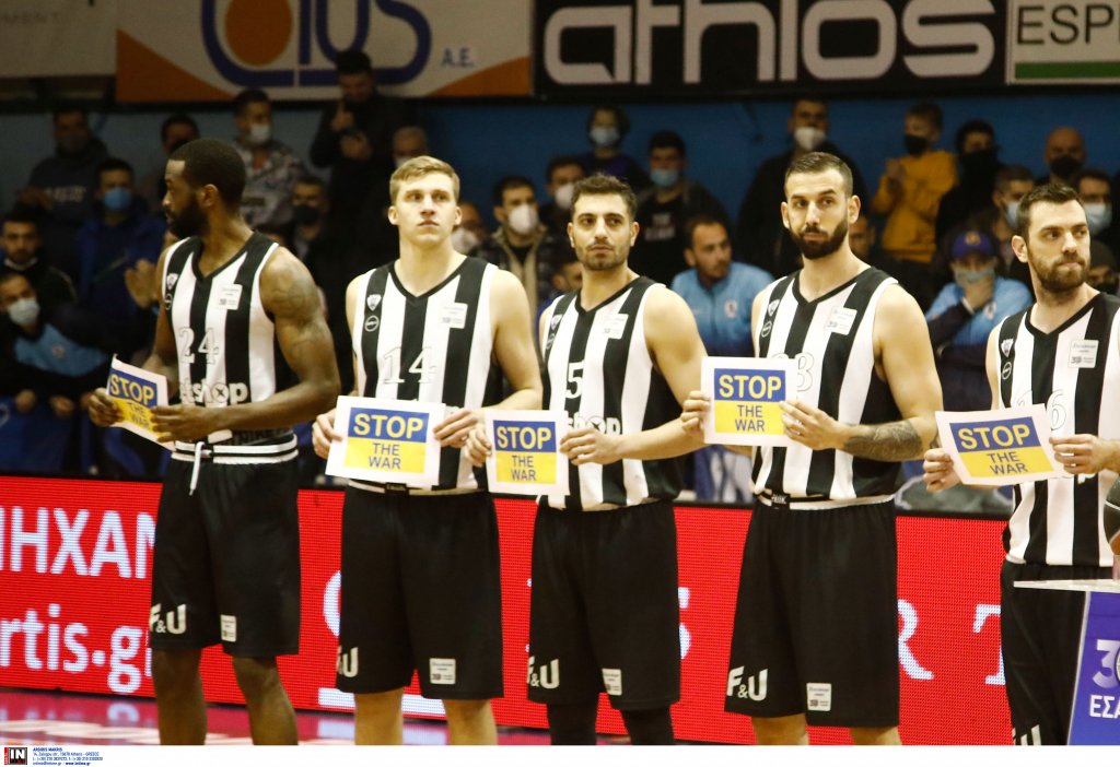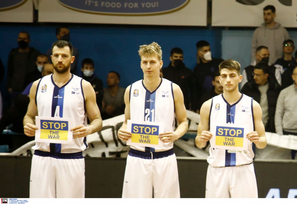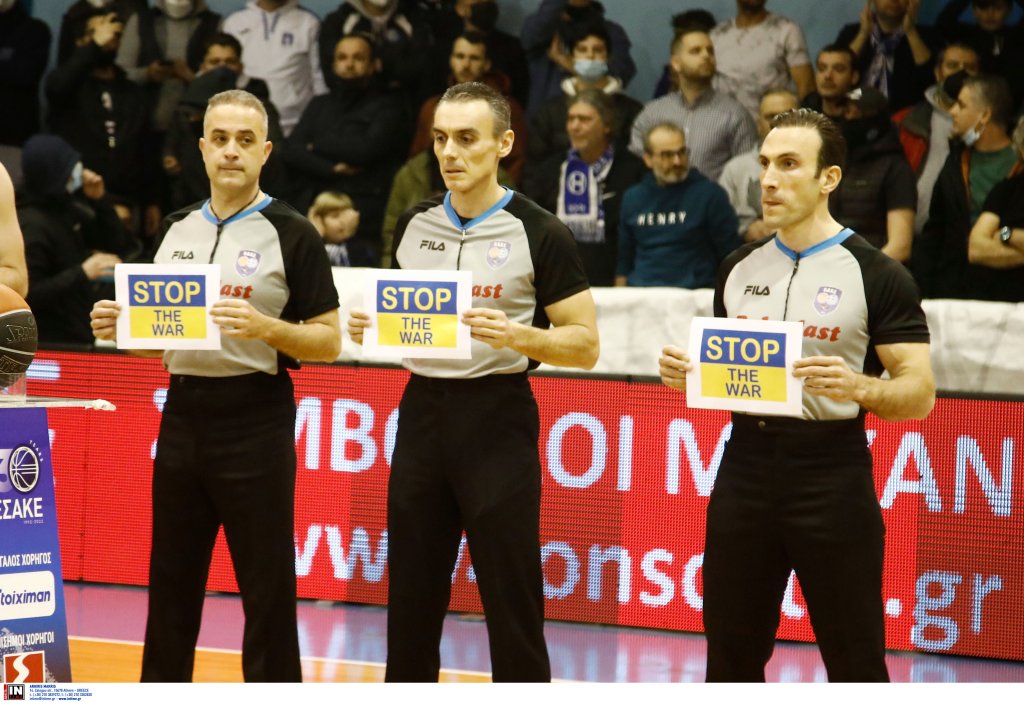«Σταματήστε τον πόλεμο» (stop the war) έγραφαν τα χαρτιά που κρατούσαν παίκτες και διαιτητές στο κέντρο του γηπέδου, που ήταν στα χρώματα της Ουκρανίας, όπου συνεχίζεται ο πόλεμος.