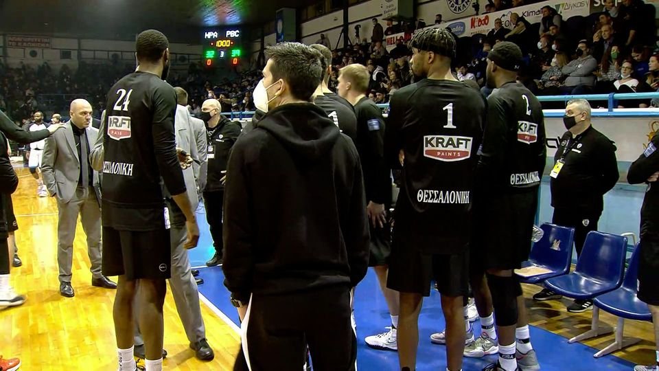 Οι παίκτες βρίσκονται κανονικά στο παρκέ με τις φόρμες τους κι εξακολουθούν να κάνουν ζέσταμα, περιμένοντας την απόφαση αναφορικά με τη συνέχιση του ματς. Οι ρεφς, Γ. Πουρσανίδης, Πιτσίλκας και Μαλαμάς, σε συνεργασία με τον κομισάριο έδωσαν διορία δέκα λεπτών στον επίσημο Ηρακλή για την εκκένωση του γηπέδου προειδοποιώντας ότι σε διαφορετική περίπτωση θα προχωρήσουν στην οριστική διακοπή του αγώνα με υπαιτιότητα της ΚΑΕ Ηρακλής.