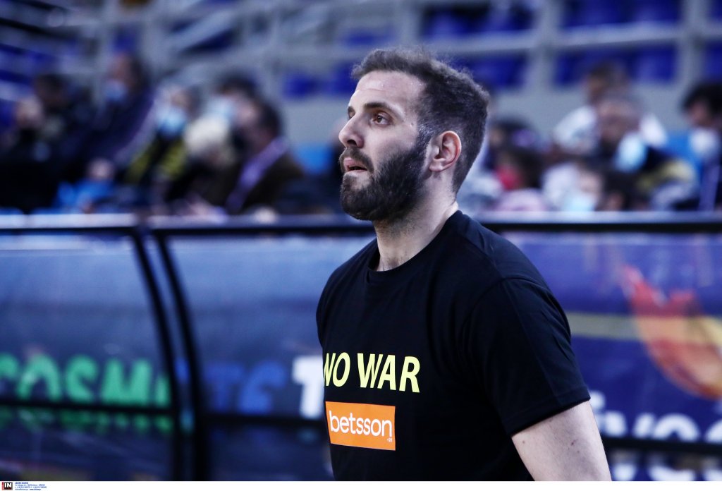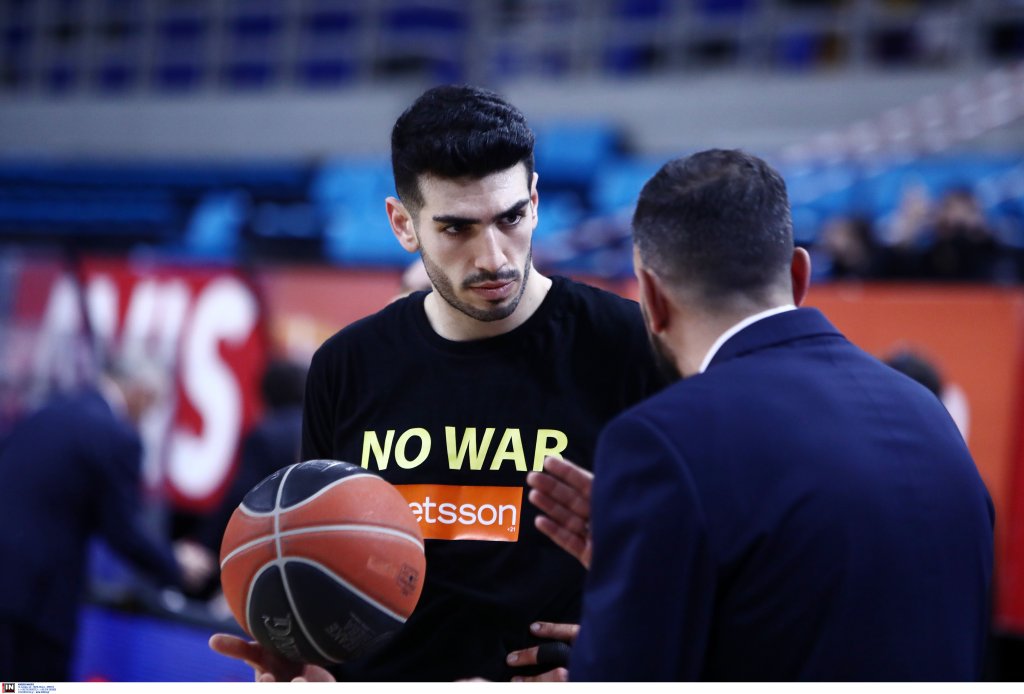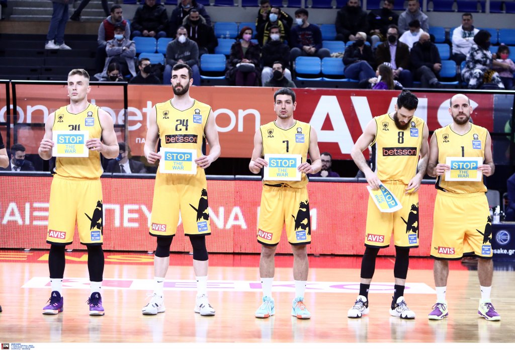 Το δικό της μήνυμα κατά του πολέμου στην Ουκρανία μετά την επίθεση που δέχτηκε από την Ρωσία, έστειλε πριν την αναμέτρηση με τον Απόλλων Πάτρας στο κλειστό των Λισίων. Οι παίκτες της ΑΕΚ εμφανίστηκαν με μπλουζάκια με το μήνυμα «Οχι στον Πόλεμο».