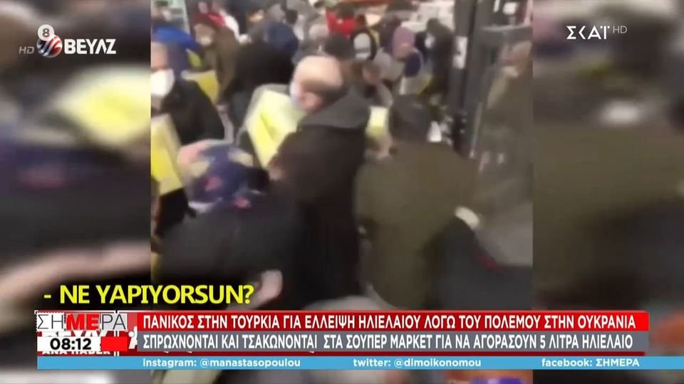 Πανικός φαίνεται να επικρατεί στην Τουρκία λόγω έλλειψης ηλιελαίου, ενώ οι πολίτες σπρώχνονται και τσακώνονται στα σούπερ μάρκετ για να προλάβουν να αγοράσουν 5 λίτρα ηλιέλαιο.