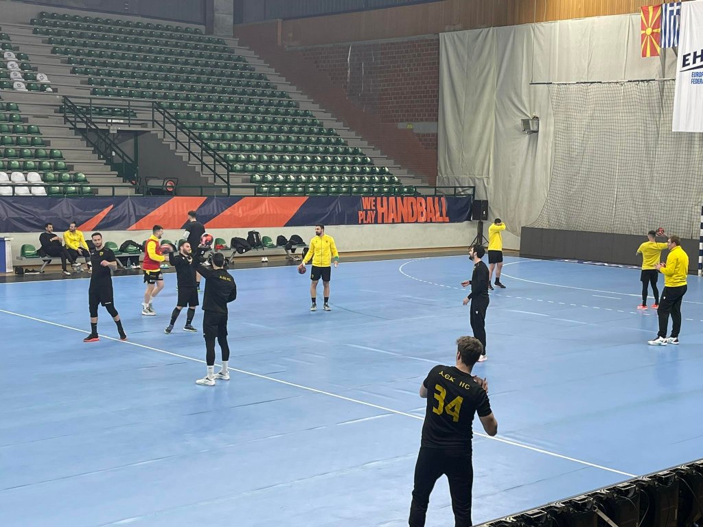 Η ομάδα χάντμπολ της ΑΕΚ ολοκλήρωσε την προετοιμασία της για την αναμέτρηση με την Πέλιστερ, στο πλαίσιο της 10ης αγωνιστικής του Group D του EHF European League. Οι παίκτες του Δημήτρη Δημητρούλια προπονήθηκαν στο γήπεδο, όπου θα διεξαχθεί ο αγώνας της Τρίτης (08/03-19:45), δηλαδή στο «Boro Curlevski» και έδειξαν ετοιμοπόλεμοι για τον «τελικό».
