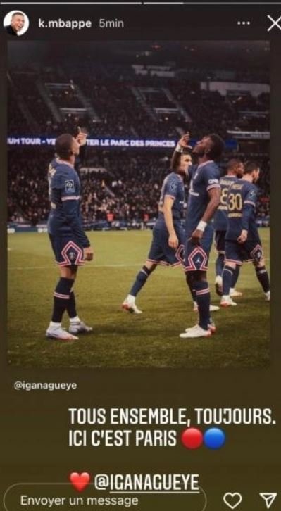 Ωστόσο ο Εμπαπέ θέλησε να βάλει τέλος σε όποια αναστάτωση προκλήθηκε και υπερασπίστηκε τον συμπαίκτη του, αναρτώντας μια κοινή τους φωτογραφία από κάποιον αγώνα των Παριζιάνων με λεζάντα: «Όλοι μαζί, πάντα. Εδώ είναι Παρίσι».