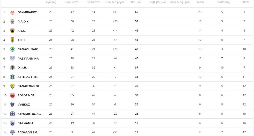 Μετά την επιστροφή των 5 βαθμών στον ΠΑΣ έχουμε αλλαγή δεδομένων με την ομάδα ων Ιωαννίνων να μπαίνει εκείνη στα πλέι οφ και ο ΟΦΗ να πηγαίνει στα πλέι άουτ. Εχουμε λοιπόν την τελική βαθμολογία της SuperLeague η οποία αναμένεται να «σφραγιστεί» την Τετάρτη, όπου θα έχουμε και την κλήρωση των πλέι οφ και των πλέι αουτ.