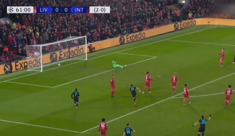 Ο Ματίπ έκανε λάθος, η μπάλα έφτασε στον Λαουτάρο που γύρισε έξω από την περιοχή και με φοβερό σουτ έγραψε το 0-1.