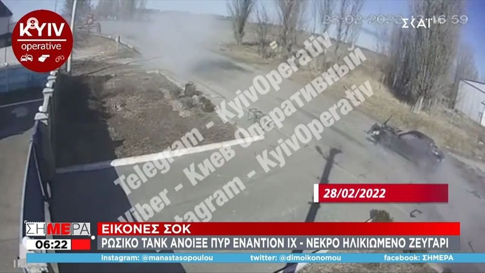 Εικόνες σοκ: Ρωσικό τανκ άνοιξε πυρ εναντίον ΙΧ - Νεκρό ηλικιωμένο ζευγάρι (VIDEO)