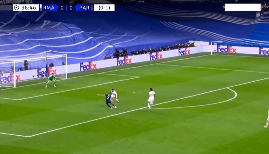 Ο Εμπαπέ έφυγε σαν σφαίρα στην κόντρα, οι αμυντικοί της Ρεάλ δεν τον έκλεισαν σωστά και ο Γάλλος πλάσαρε από το ύψος της περιοχής για το 0-1.