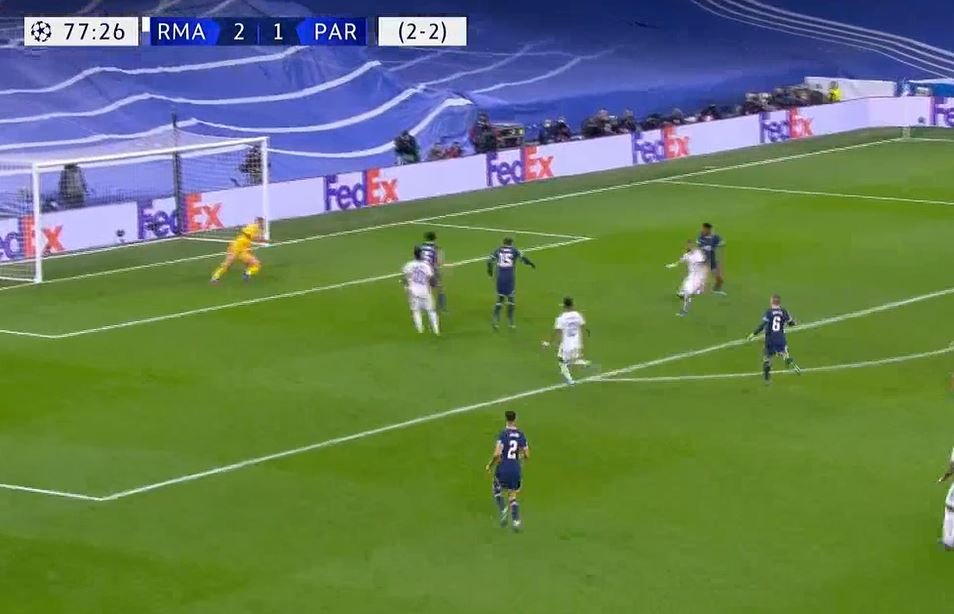 Από τη σέντρα της Παρί ξεκίνησαν τα λάθη, ο Μαρκίνιος έκανε το τελευταίο μέσα στην περιοχή του και ο Μπενζεμά πλάσαρε με τη μία για να γράψει το 3-1
