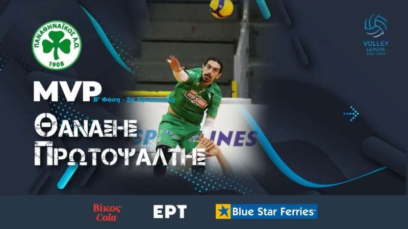 Ο διεθνής ακραίος του Παναθηναϊκού Θανάσης Πρωτοψάλτης αναδείχτηκε MVP Βίκος Cola στην 2η αγωνιστική της B΄φάσης του πρωταθλήματος Volley League 2021-22.