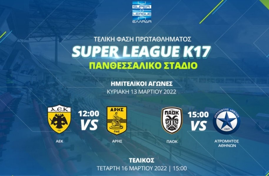 H ανάδειξη του Πρωταθλητή Κ17 θα γίνει από την Τελική Φάση (final 4) του Πρωταθλήματος Super League K17 αγωνιστικής περιόδου 2021-22, η οποία θα διεξαχθεί την Κυριακή 13/3/2022 (ημιτελικοί) και την Τετάρτη 16/3/2022 (τελικός) στο Πανθεσσαλικό Στάδιο.