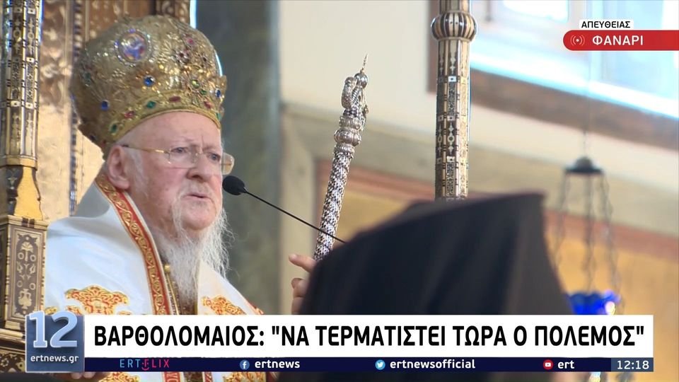 Οικουμενικός Πατριάρχης: Να σταματήσει τώρα ο πόλεμος (VIDEO)