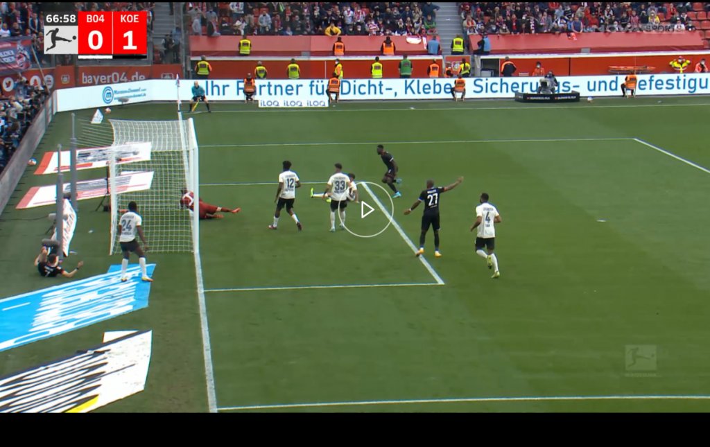 Στο 64' ο Κίνγκσλεϊ Σίντλερ και ο Ντέγιαν Λιούμπισιτς μπήκαν στο ματς και τρία λεπτά αργότερα δικαίωσαν τον προπονητή της Κολωνίας. Από τα αριστερά ο Λιούμπισιτς πρόλαβε πριν η μπάλα περάσει τη τελική γραμμή, έβγαλε τη σέντρα και ο Σίντλερ με πλασέ έκανε το 0-1. Οι φιλοξενούμενοι κράτησαν το προβάδισμα, παρά τις δυο ευκαιρίες του Αζμούν για ισοφάριση και, έτσι, η Κολωνία, μείωσε στους τέσσερις βαθμούς τη διαφορά από την αντίπαλό της. Η Λεβερκούζεν παραμένει στη τρίτη θέση, αλλά, πλέον, νιώθει την... καυτή ανάσα των Φράιμπουργκ και Χόφενχαϊμ.