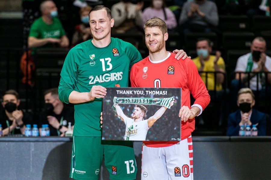 Ο Τόμας Γουόκαπ επέστρεψε στο Κάουνας για πρώτη φορά ως αντίπαλος με τη φανέλα του Ολυμπιακού. Ο Αμερικανός πέρασε τρία μαγικά χρόνια με τα χρώματα της Ζάλγκιρις και βελτιώθηκε άρδην υπό τις οδηγίες του Σαρούνας Γιασικεβίτσιους.