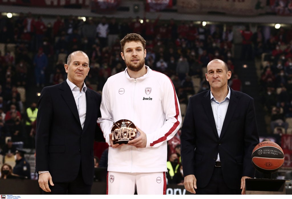 Ο Σάσα Βεζένκοφ πριν την έναρξη του ντέρμπι με τον Παναθηναϊκό, δέχθηκε το άπλετο χειροκρότημα του κόσμου την ώρα που έλαβε το βραβείο του καλύτερου παίκτη για τον μήνα Φεβρουάριο.