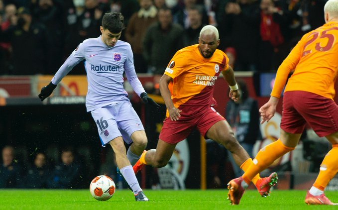 Στην Πόλη η Μπαρτσελόνα έδειξε χαρακτήρα, νίκησε με 2-1 τη Γαλατά και πέρασε στην επόμενη φάση. Στο 6ο λεπτό ο Γκομίς άντεξε στην πίεση τον αμυντικών και πλάσαρε με τον Γκαρθία να κόβει σωτήρια για τους Καταλανούς. Ο Φεράν στο 9' ελευθερώθηκε και έκανε το σουτ με την μπάλα να φεύγει ψηλά. Δευτερόλεπτά μετά ο Φρένκι Ντε Γιόνγκ βγήκε τετ α τετ και πλάσαρε άουτ. Επόμενη αξιόλογη φάση αυτή στο 26' όταν ο αμαρκάριστος Πέδρι πλάσαρε ψηλά από το όριο της μεγάλης περιοχής. Στο 28' η Γαλατά άνοιξε το σκορ. Ο Τσικαλντάου εκτέλεσε κόρνερ από δεξιά και ο Μαρκάο με κεφαλιά-ψαράκι έστειλε την μπάλα στα δίχτυα. Η Μπάρτσα όμως απάντησε άμεσα. Στο 37' οι παίκτες της συνδυάστηκαν εξαιρετικά, ο Πέδρι με προσποιήσεις διέλυσε την άμυνα και με πλασέ έκανε το 1-1. Στις καθυστερήσεις του ημιχρόνο ο Τραορέ σέντραρε από δεξιά, ο Ομπαμεγιάνγκ βρήκε την μπάλα με το κεφάλι, την έδωσε ψηλοκρεμαστή πορεία και βρήκε το οριζόντιο δοκάρι.
